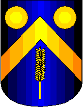 Pain, d'azur au chevon d'or accompagne a 2 bezants d'or en chef et d'un epi de ble d'or en pointe.