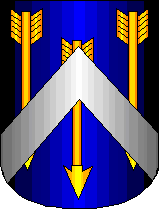 Soyer: d'azur a 3 dars (i fleches) d'or la pointe en bas pose en pal 1 et 2 et un chevron d'argent brochant sur le tous.